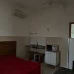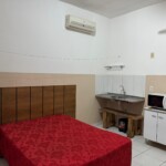 Quitinete mobiliada na entrada do Distrito Industrial, com uma suite, banheiro com box blindex.